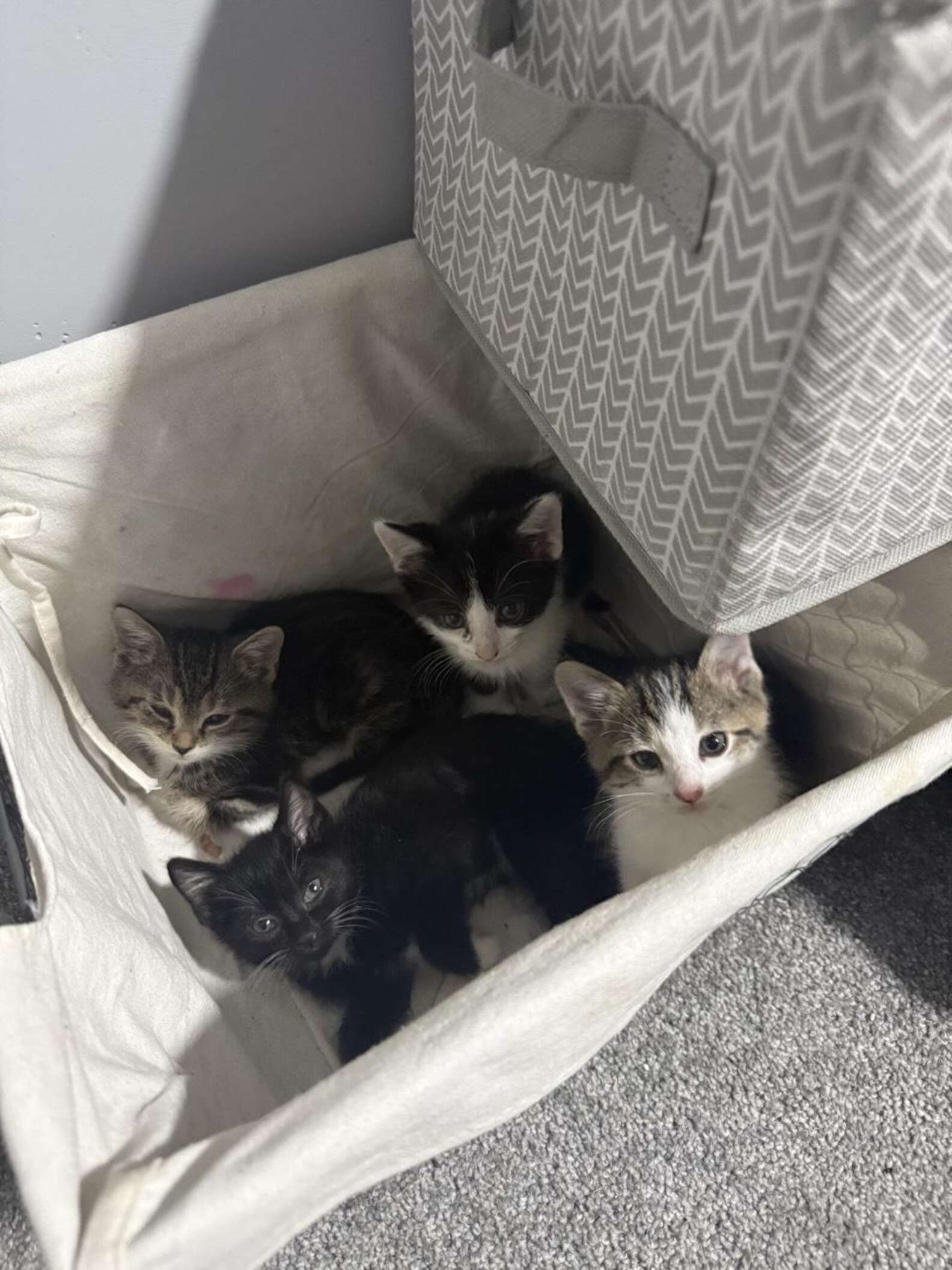 After years of living as a stray, Joanie struggled to acclimate to life indoors. But her kittens have all seemed to adapt to their new home — and the humans whom they share it with — nicely.