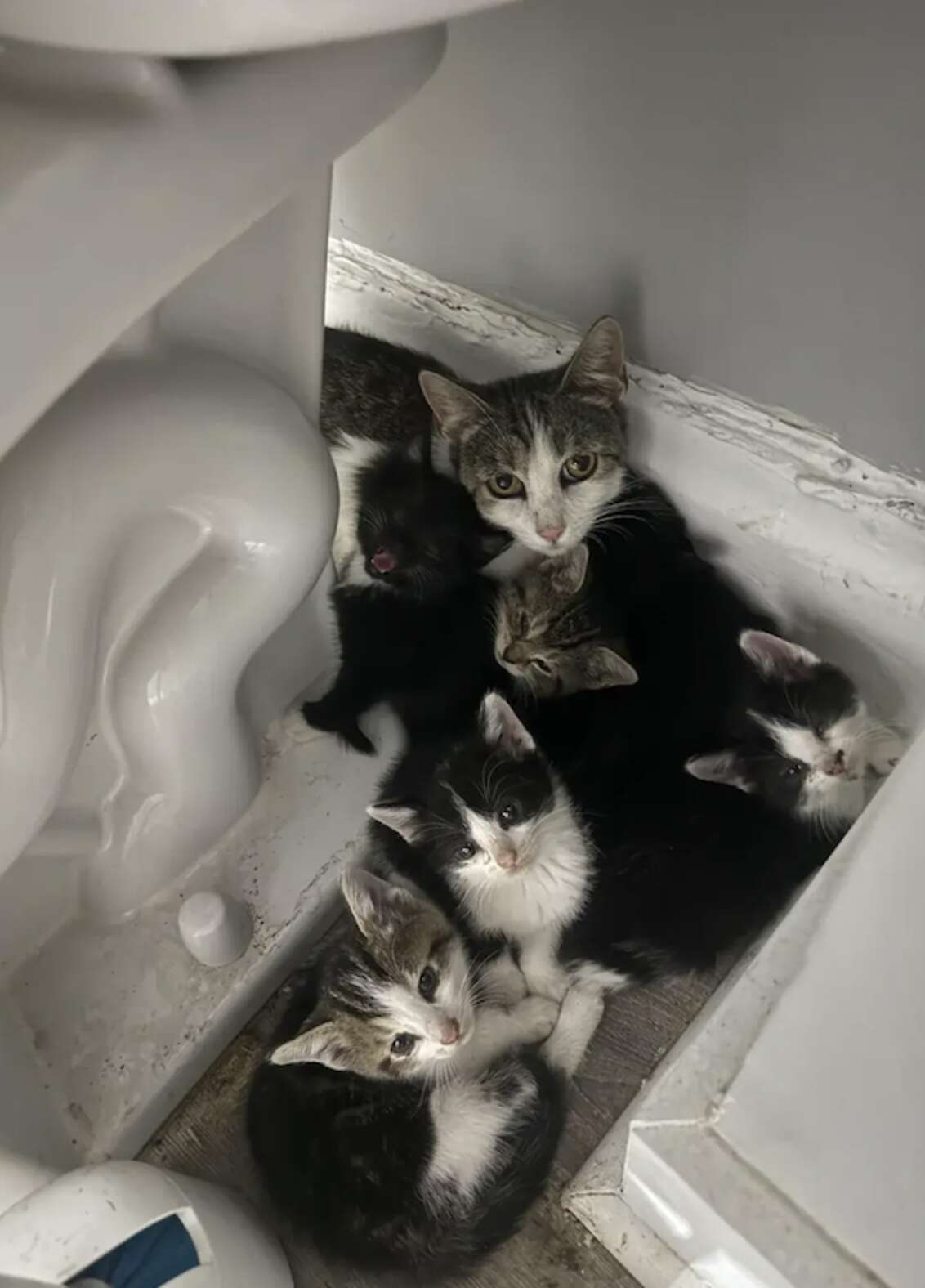 Before long, the empathetic rescuer was able to pick the kittens up one by one and carry them home.