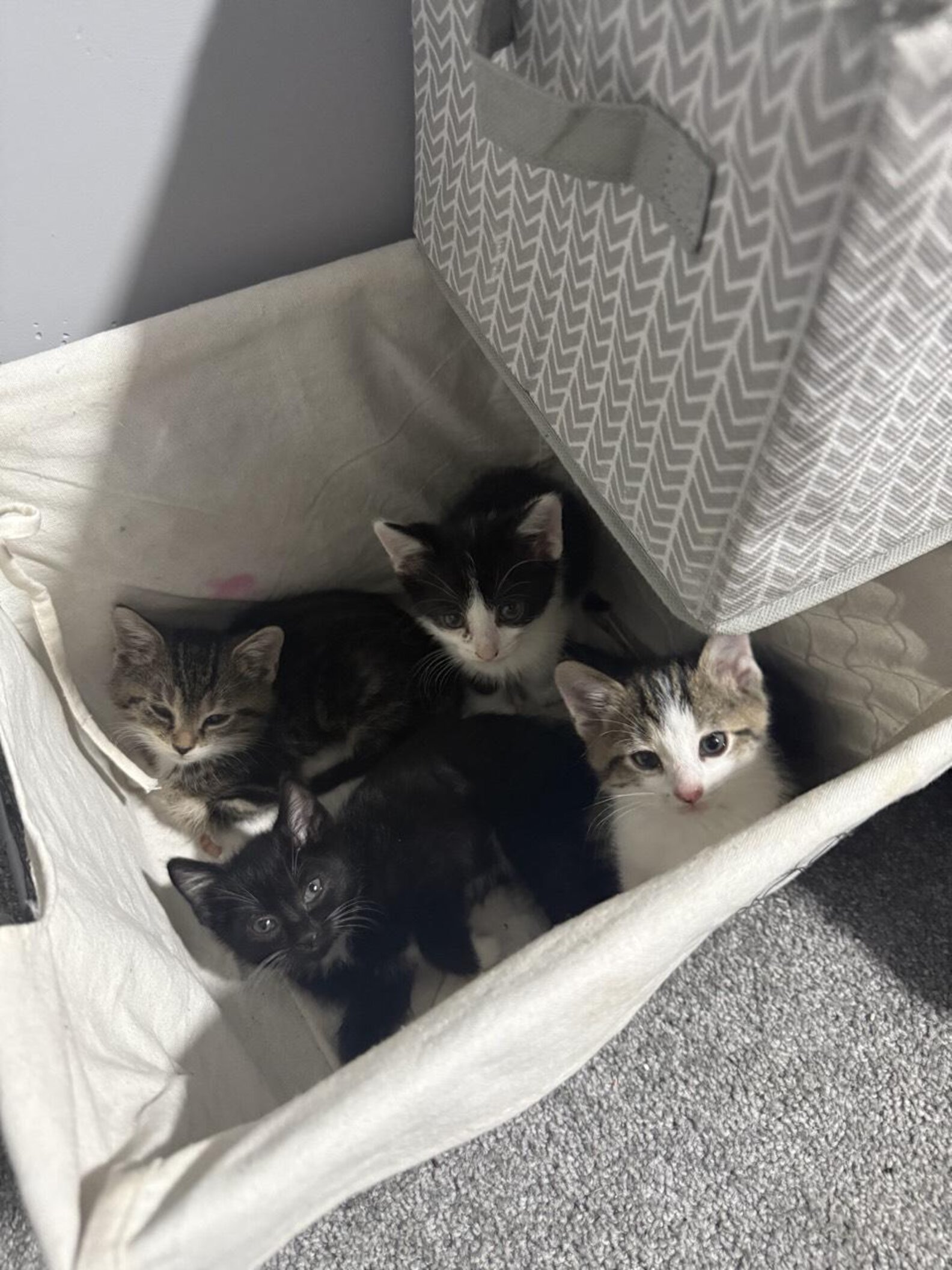 After years of living as a stray, Joanie struggled to acclimate to life indoors. But her kittens have all seemed to adapt to their new home — and the humans whom they share it with — nicely.