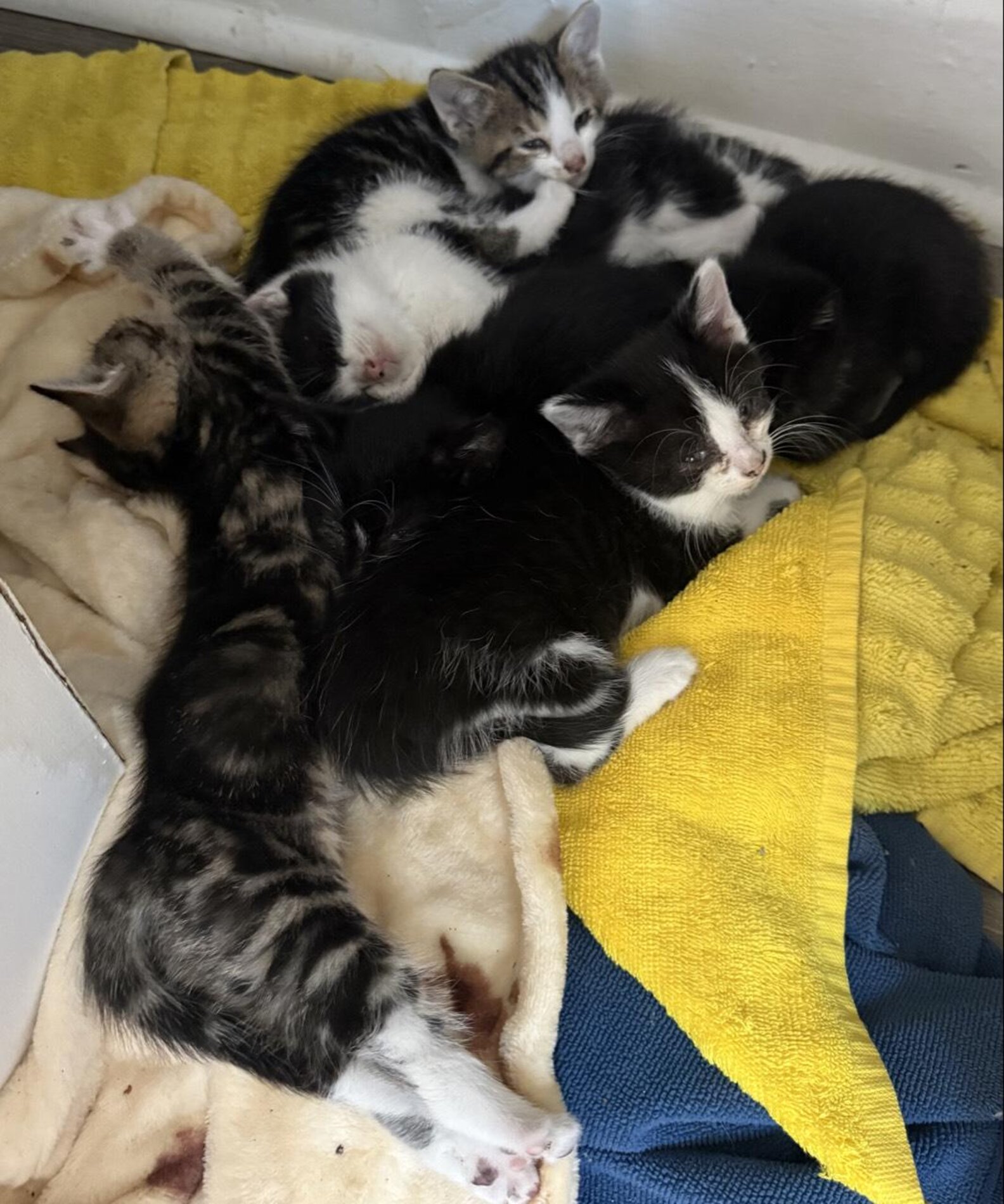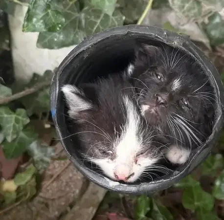 Before long, the empathetic rescuer was able to pick the kittens up one by one and carry them home.