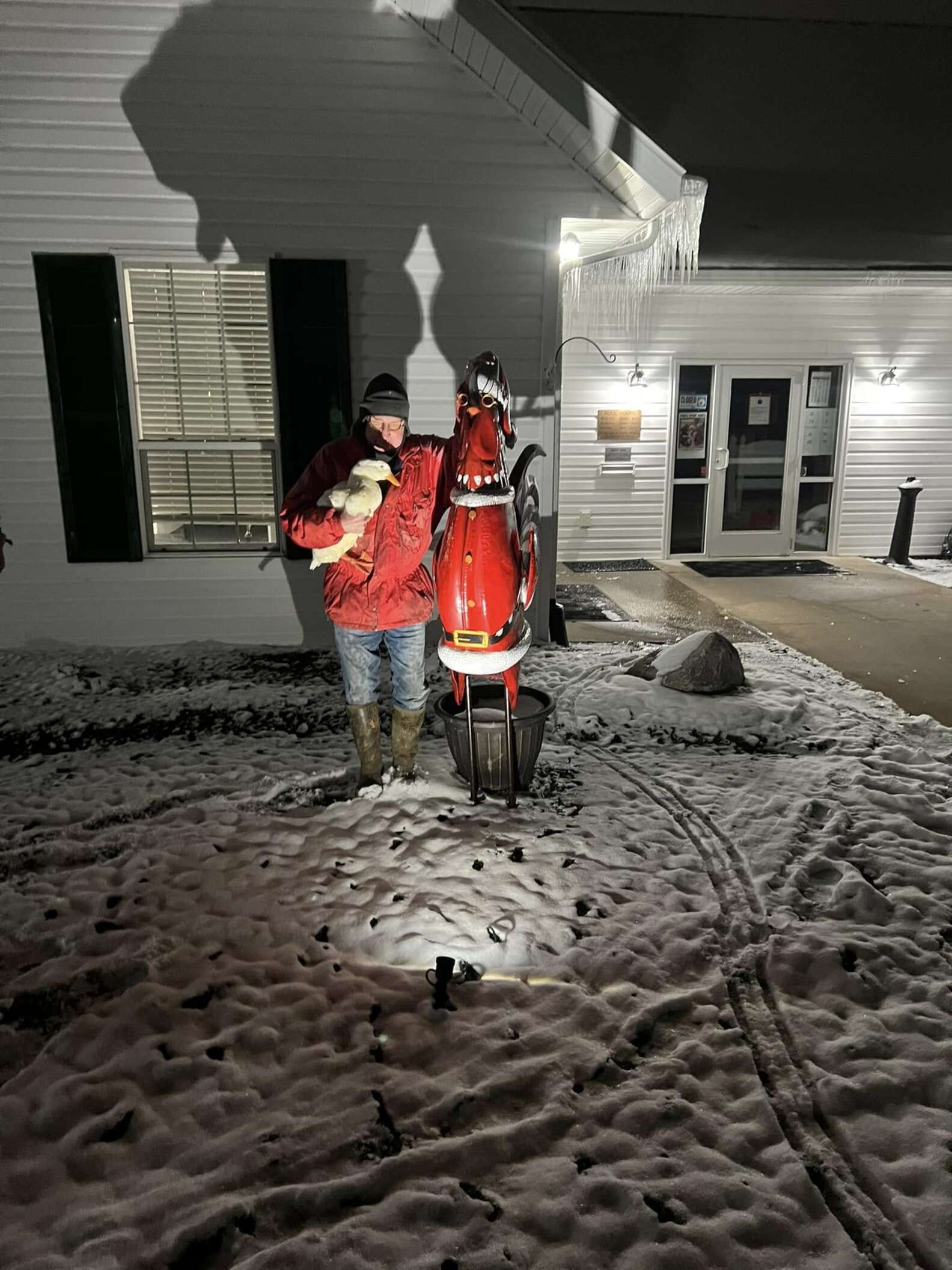 It was a chilly December afternoon in Michigan when Matthew and Theresa Lyson received a heart-stopping call for help. The founders and co-directors of Michigan Duck Rescue and Sanctuary (MDRS) were preparing to shelter from the cold inside their warm home until they saw the attached picture of someone fluffy stuck in a freezing pond.