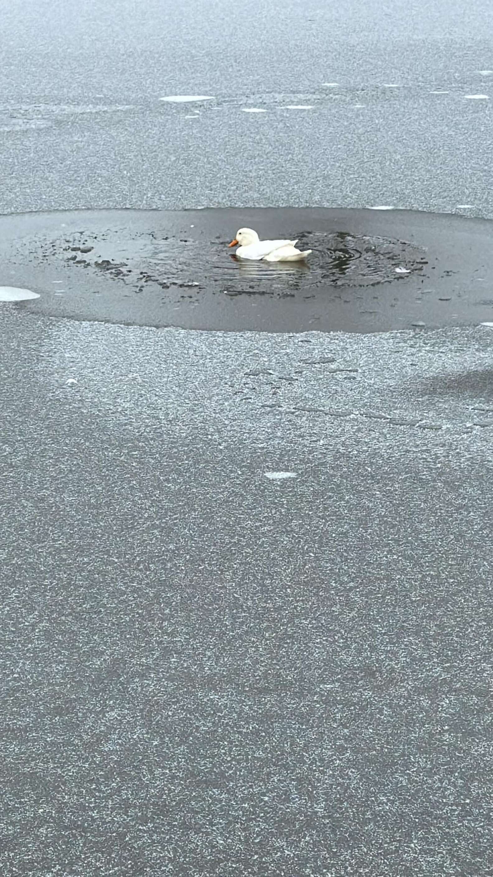 Rescuers Break Ice Trying To Save Frozen Duck Trapped In Pond For Days
