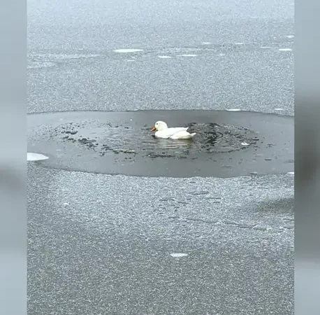 Rescuers Break Ice Trying To Save Frozen Duck Trapped In Pond For Days