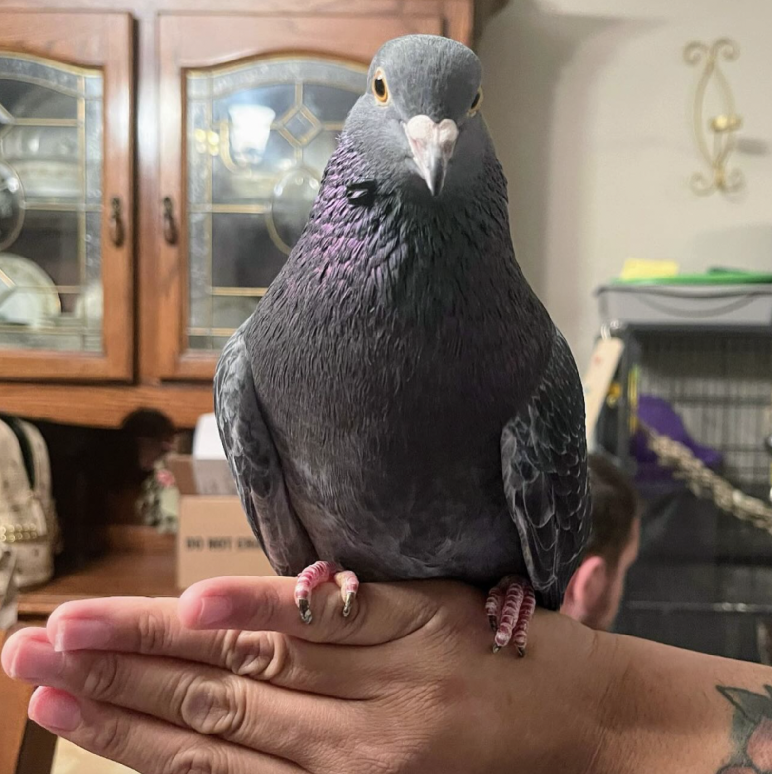 “Rasta was remarkably trusting of people right from the beginning, but he was terrified to explore his new world!” Chava Sonnier, president and cofounder of Great Lakes Pigeon Rescue, told The Dodo. “He was scared of toys, of his new soft bed, even of his food dish! When he was gently lifted out of his cage, he clung to the arms, shoulders, and laps of the volunteers giving him rehab care, afraid to be set down to walk around the house on his own.”