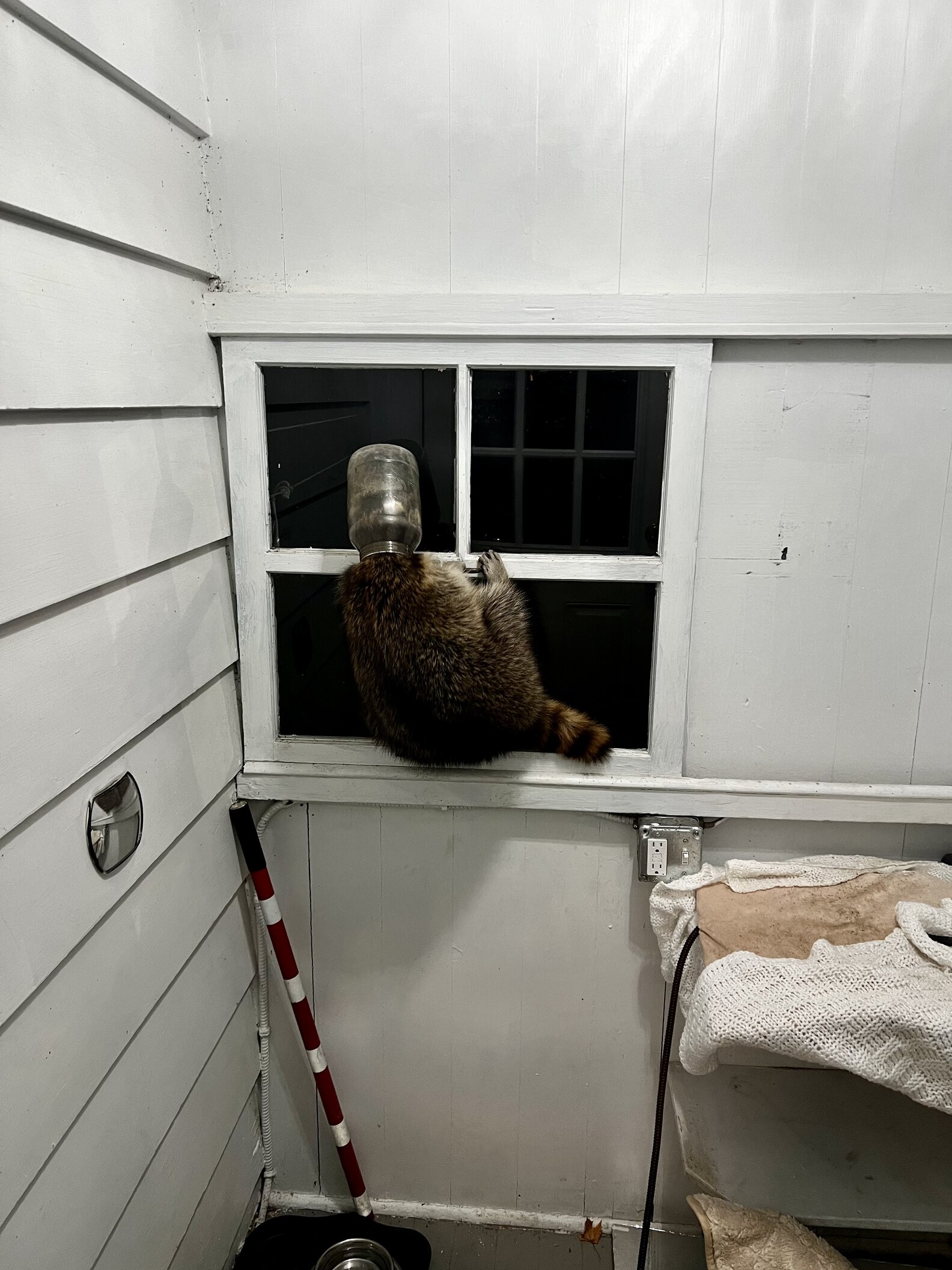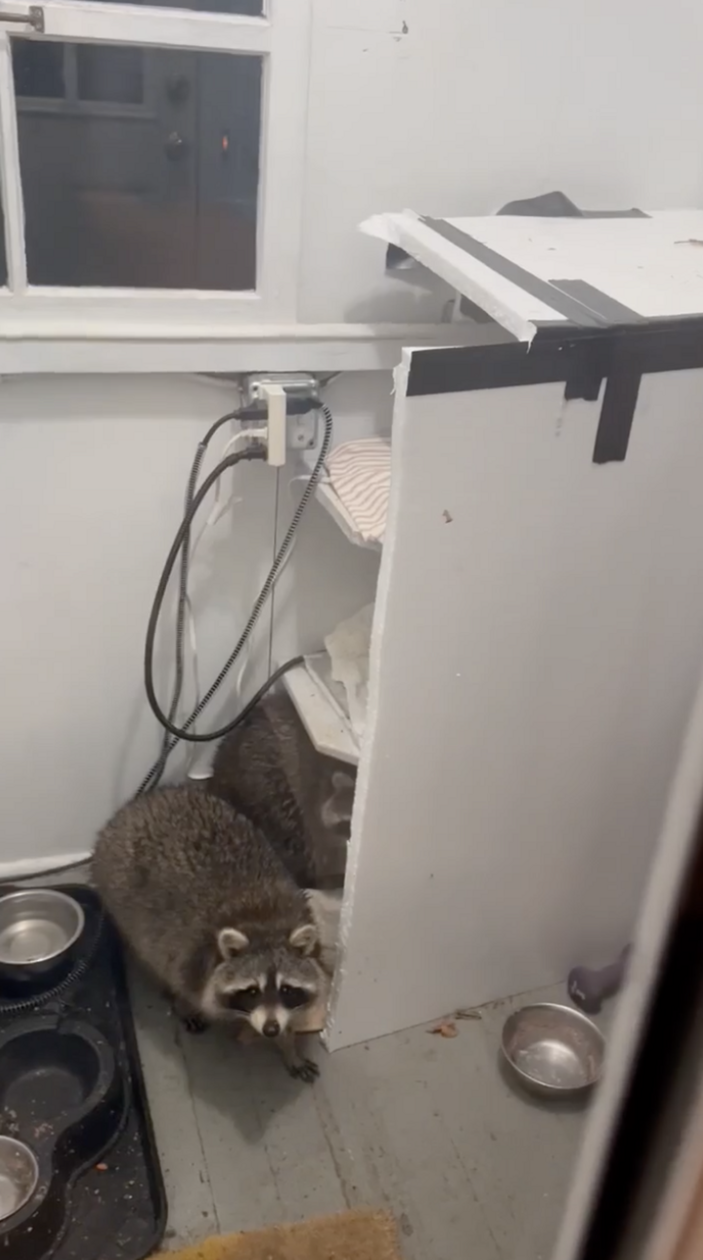 Thebarge was finally able to get in touch with some local wildlife rehabbers, who stopped by to set up a trap for the raccoon. In the meantime, Thebarge decided to take matters into his own hands.