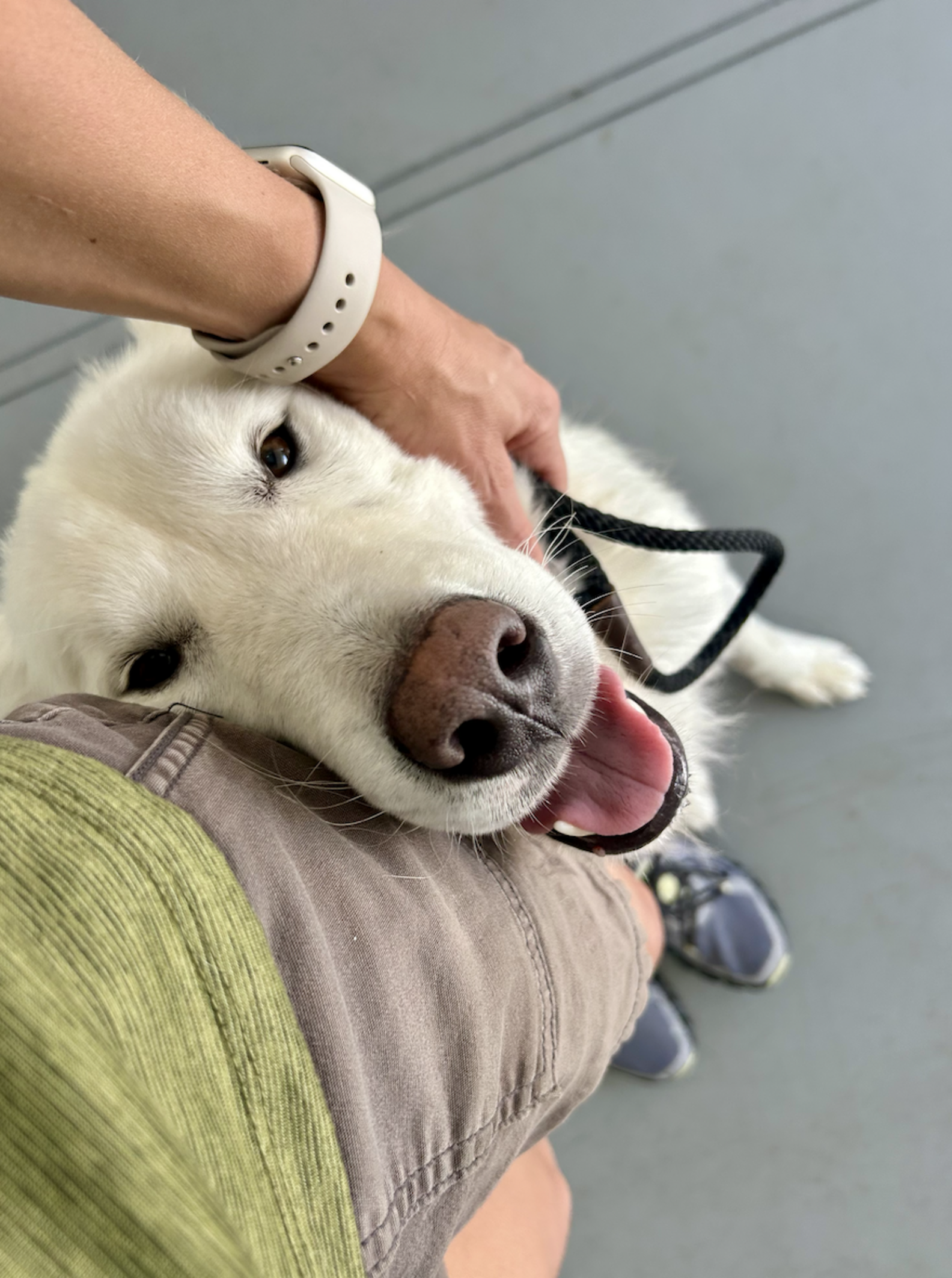 “Azul was excited, curious, playful, in overall good spirits after all the travel,” McIntyre said. “He was as gentle and curious as we remembered; he delivered much more puppy energy than on that trail in December, when he presented as tired and sad.”