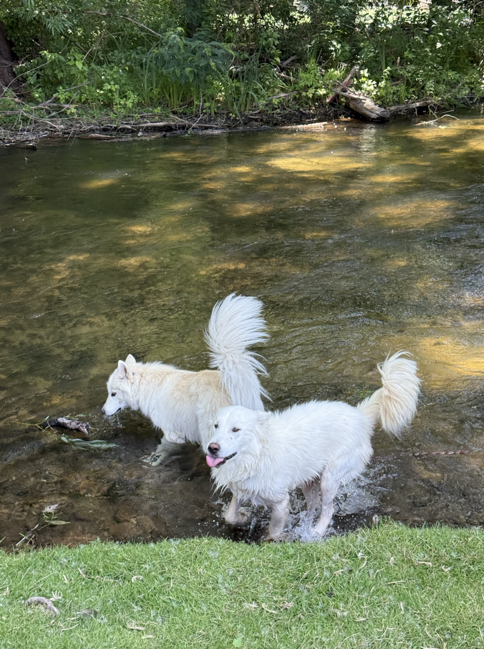 “He greeted Bodhi and Renzo with sniffs and a wagging tail,” McIntyre said. “One of the first mornings, we watched while he lay in the early sun, nose twitching with the new smells, meditating on this unfamiliar place and sensations.”