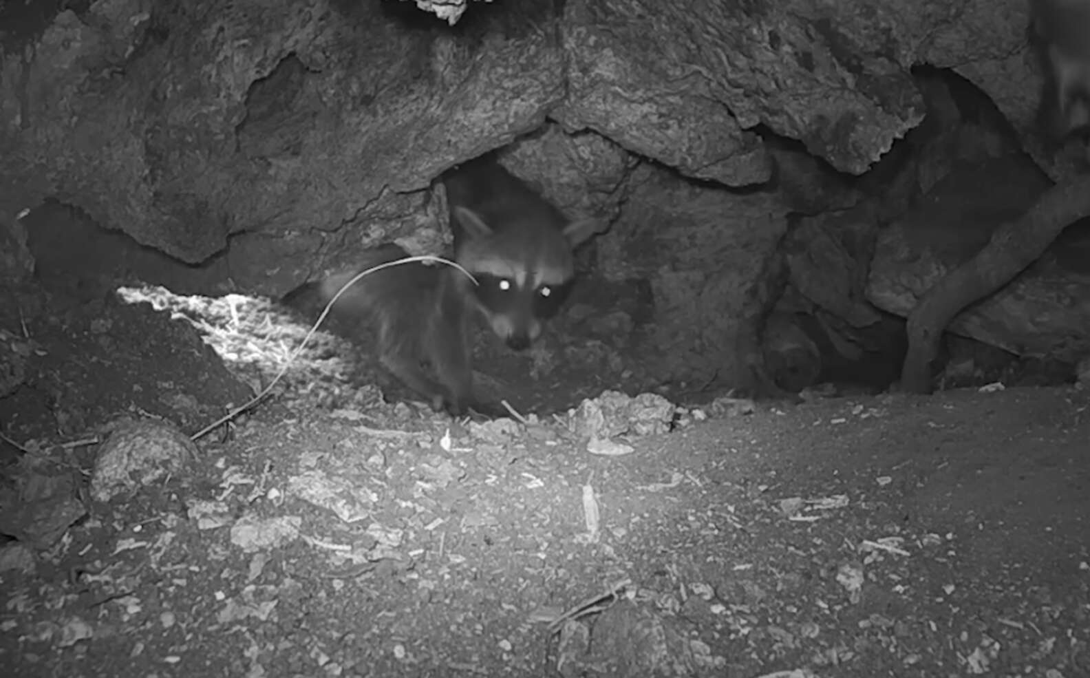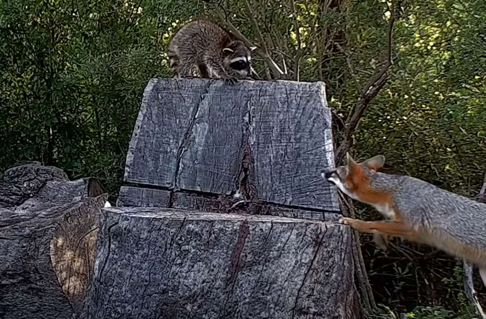 “This is a fox den,” Ballard says in the video. “Mama raccoon seems to be thinking that it’s actually a raccoon day care.”