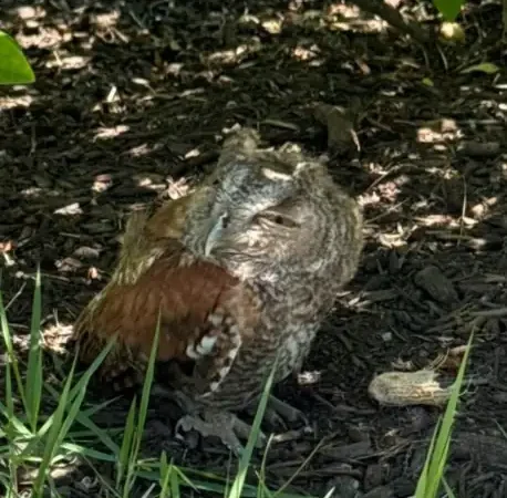 As the team neared the young Eastern screech owl, they began to theorize how he had landed in such a perilous situation.