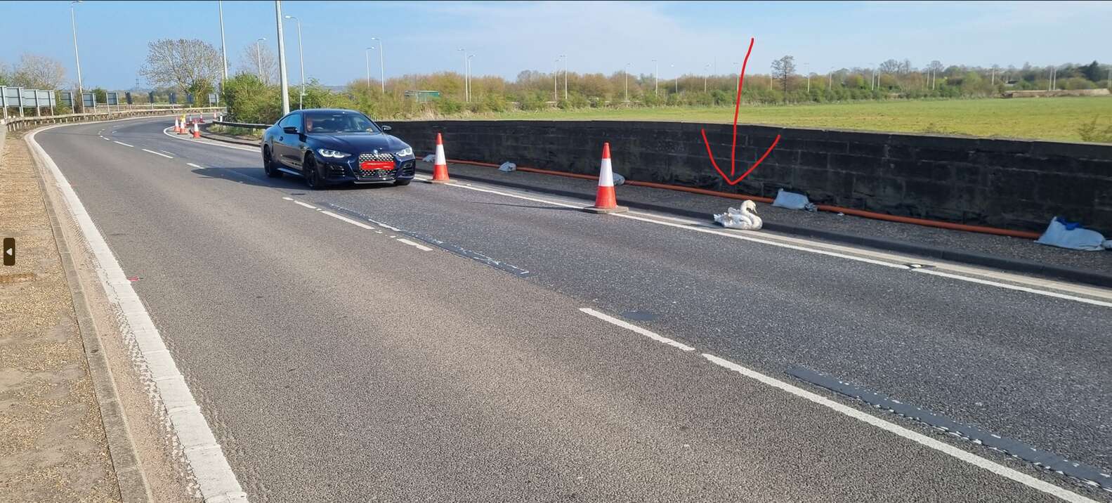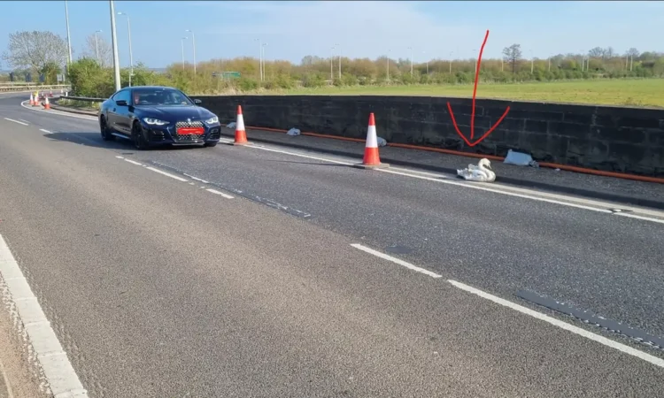 It’s not unusual to find stray car parts or construction items on the shoulder of the A1, one of the UK’s busiest roadways, from time to time. But last week, a few drivers were shocked to discover that a white object on the side of the highway wasn’t part of a vehicle or construction project: It was feathered and breathing.