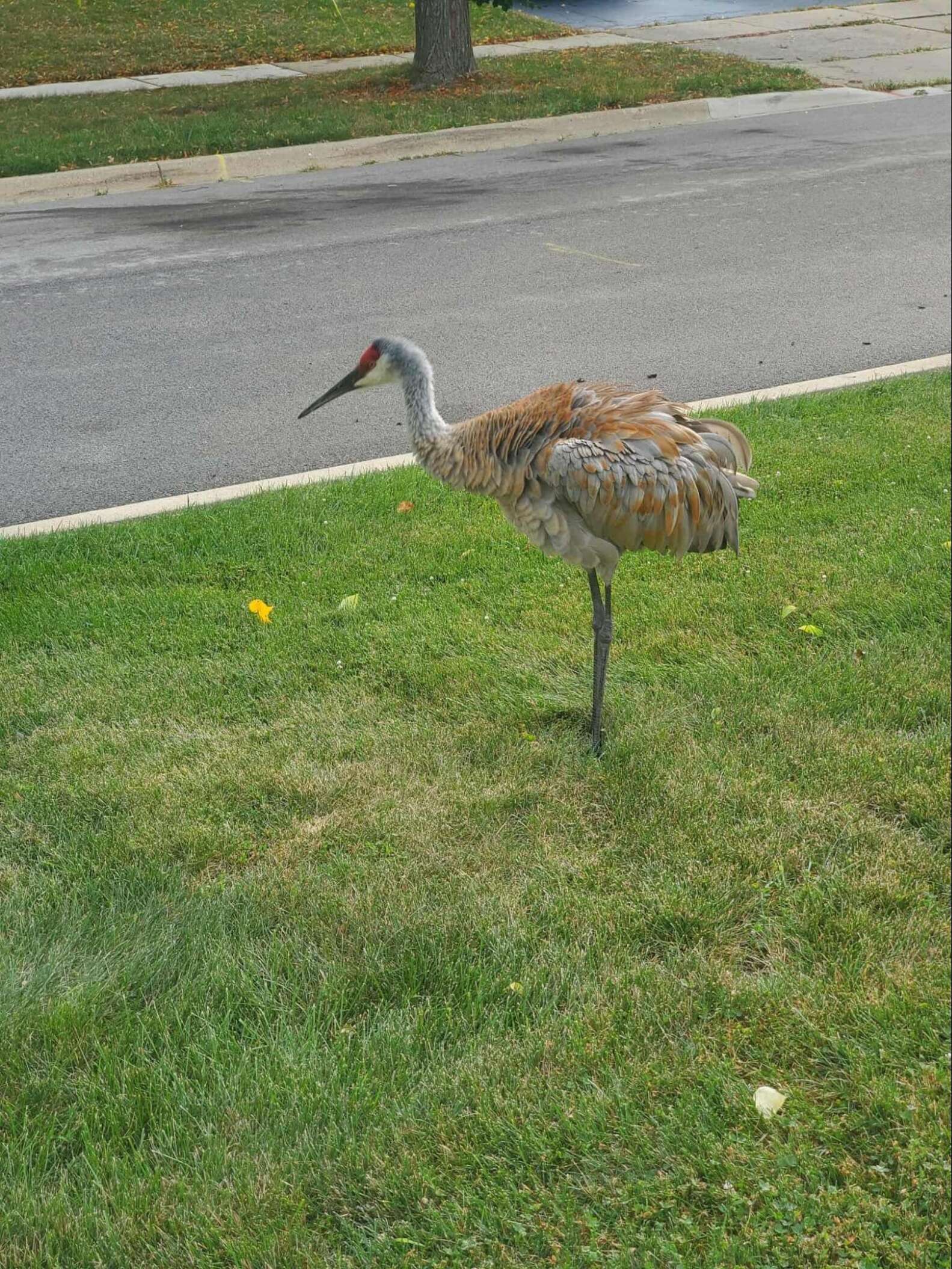 The friendly crane seemed content to hang out with Schwager, who wondered if he had gotten separated from his flock. “I looked in the park near the house to see if we could find his friends, but couldn’t see any other cranes,” she said.