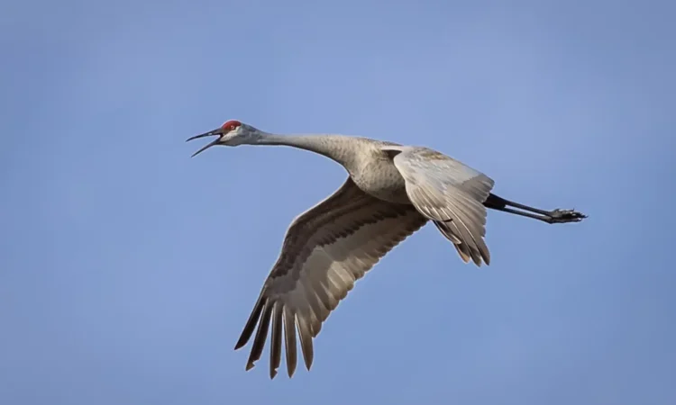 In the fall and winter, sandhill cranes migrate from Canada and the northern United States to head back south, sometimes stopping in the Midwest.