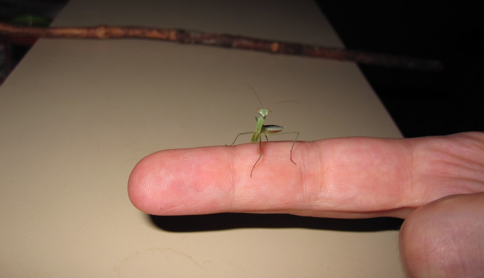 Though praying mantises do indeed die shortly after laying eggs, unfertilized or not, her odds of surviving into adulthood at all were greatly improved by the care and protection of her human “parent.”
