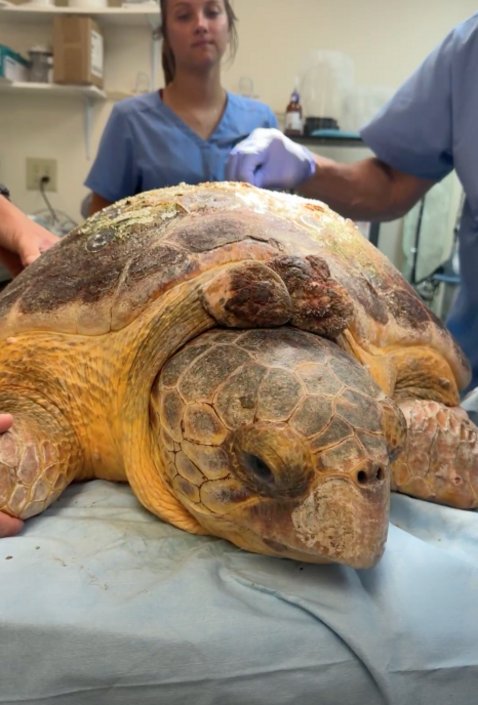 “One of the largest tumors we’ve ever seen!” The Turtle Hospital wrote in a Facebook post about Molly’s arrival at their facility. Zirkelbach said a viral disease called fibropapillomatosis (FP) causes tumors, but it’s rare among loggerheads. She’s only seen two other cases in her whole career.