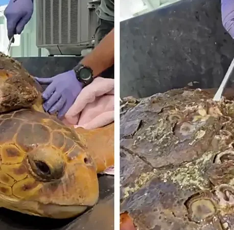 Rescuers Pry Barnacles Off Sea Turtle