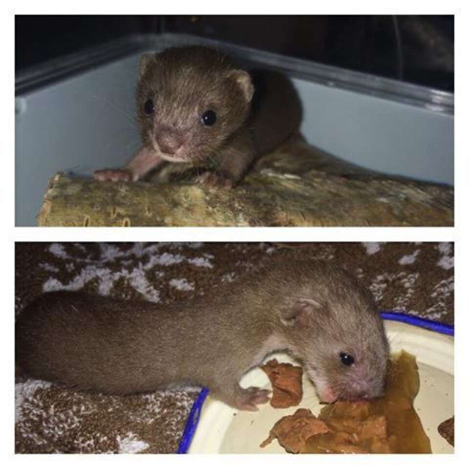 Beezle quickly went from being an abandoned baby to rambunctious young weasel, capable of eating solids and possessing endless amounts of energy.