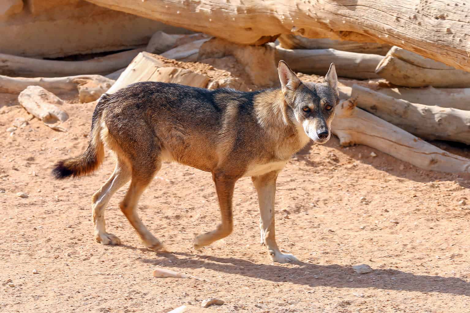 A sub-species of the Canis lupus, the Arabian wolf (Canis lupus arabs) was once thought to be the same species as the Indian wolf or C. l. Pallipes. And it was not until 1934 that British zoologist Reginald Innes Pocock identified this breed as a distinct sub-species. He considered that their skulls and overall size were smaller than the Indian wolf, and they were more similar to the Canis lupus wolf species than C. l. Pallipes. There remains some ambiguity in the taxonomic status of the sub-species in Israel and Palestine because as you head north on the Arabian Peninsula, the wolves end up with distinctly longer fur. In addition, interbreeding with feral dogs is also resulting in a transformation in this wolf species.