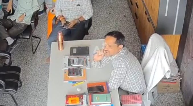 El incidente ocurrió en la localidad de Pindwara y quedó captado por cámaras de seguridad instaladas dentro de una ferretería.