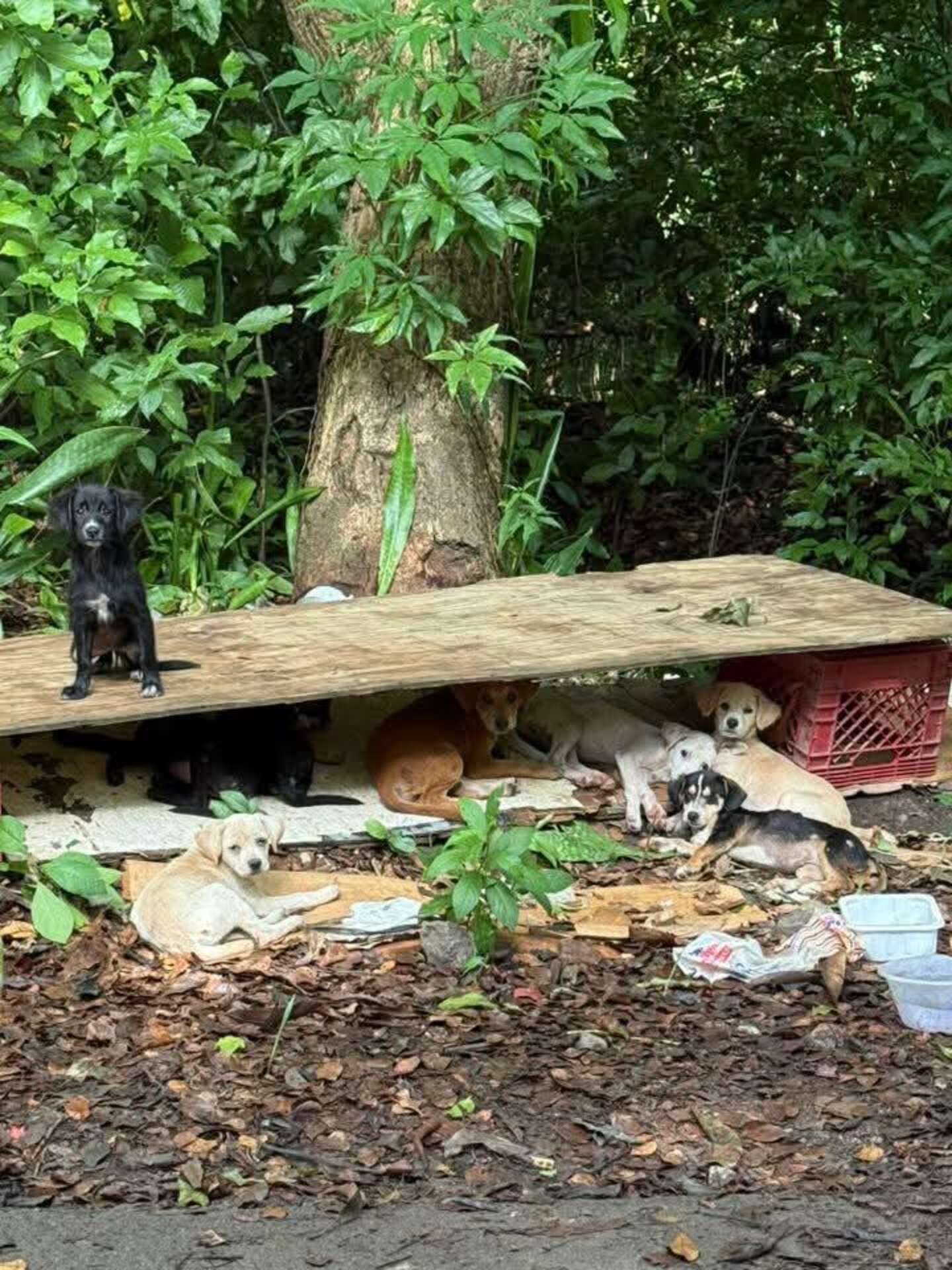 Without skipping a beat, Bernal parked her car and approached the dogs. One of the pups, a tan girl later named Luna, barked at Bernal as if pleading for help, while her siblings stumbled over the buckets of food left with them.