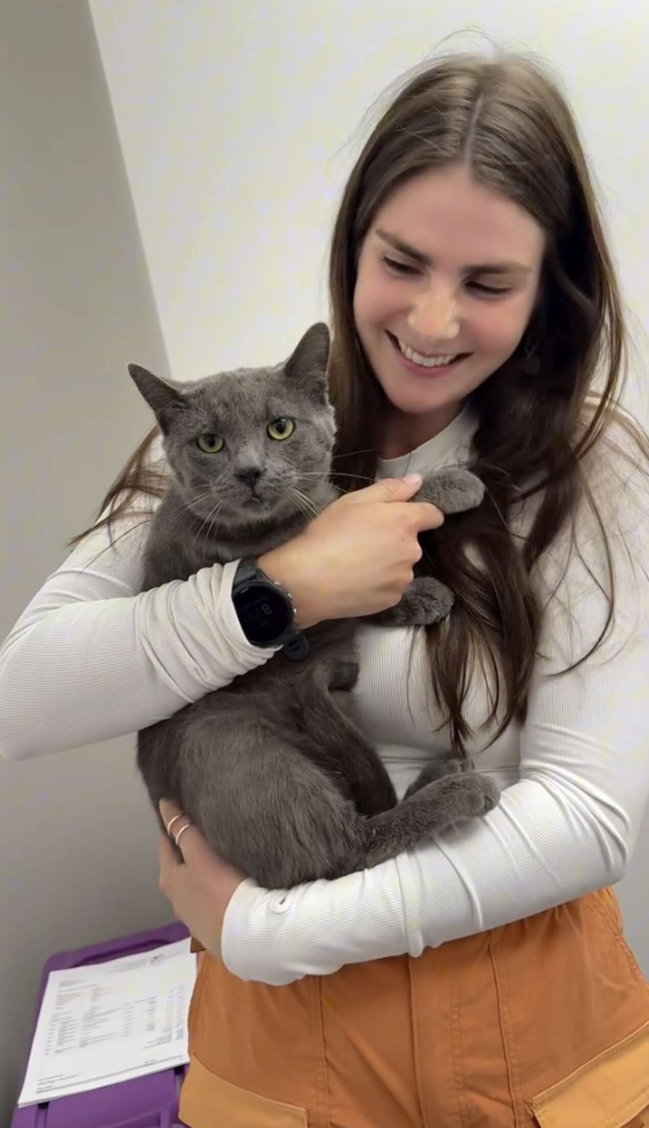 Begg carefully held the cat to her chest, trying not to cause him any more pain. Despite his injuries, the cat seemed to know he was in safe hands.