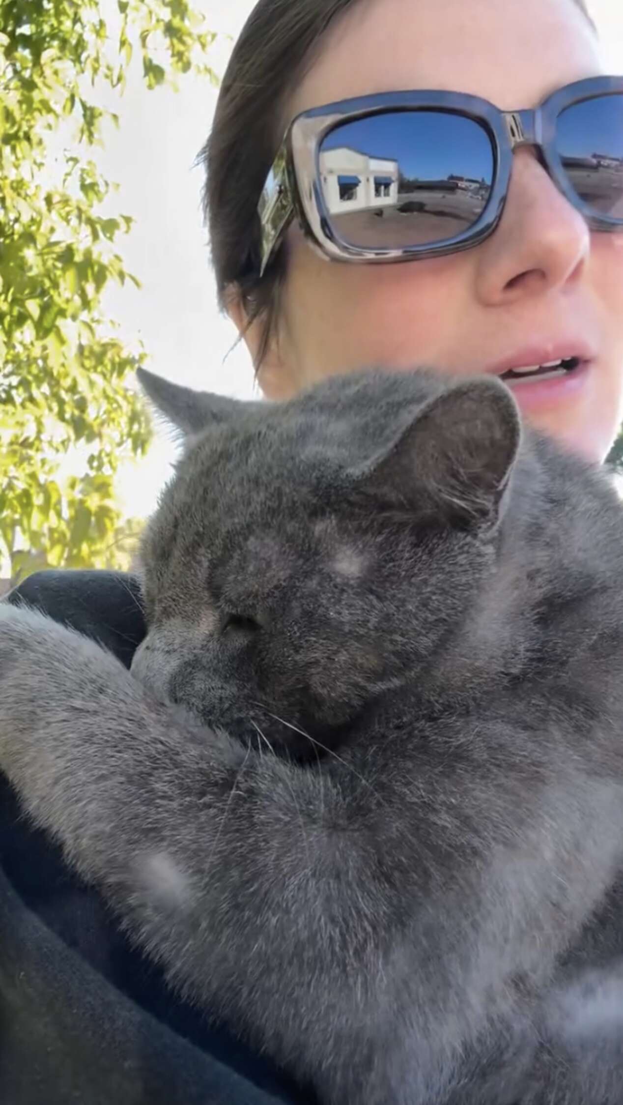 It all started when Begg locked eyes with a gray cat on the side of the road, who instantly captured her heart. She continued walking, and seconds later heard “the most gut-wrenching sound.”