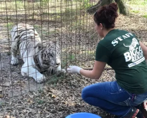 One adorably quirky thing that rescuers have learned about a white tiger named Sapphire is that she’s obsessed with her big red and green toy